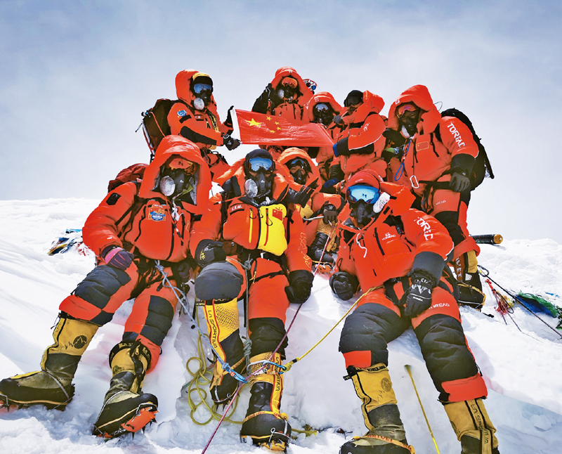精确测量珠穆朗玛峰的高程具有重要科学价值,是国家测绘技术水平和能力的综合体现。2020珠峰高程测量登山队最终确定珠穆朗玛峰的最新高程为8848.86米。图为2020年5月27日,登山队在珠穆朗玛峰顶合影留念。 新华社特约记者 扎西次仁/摄