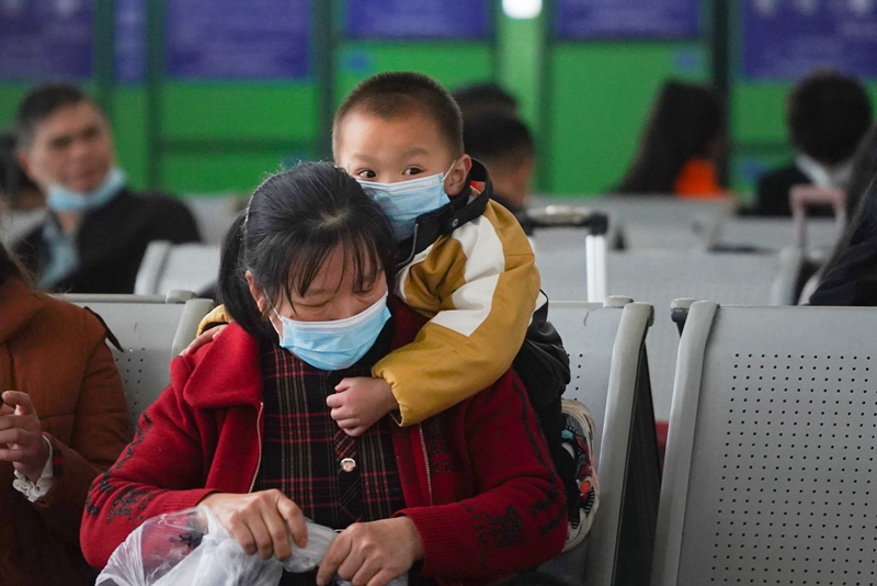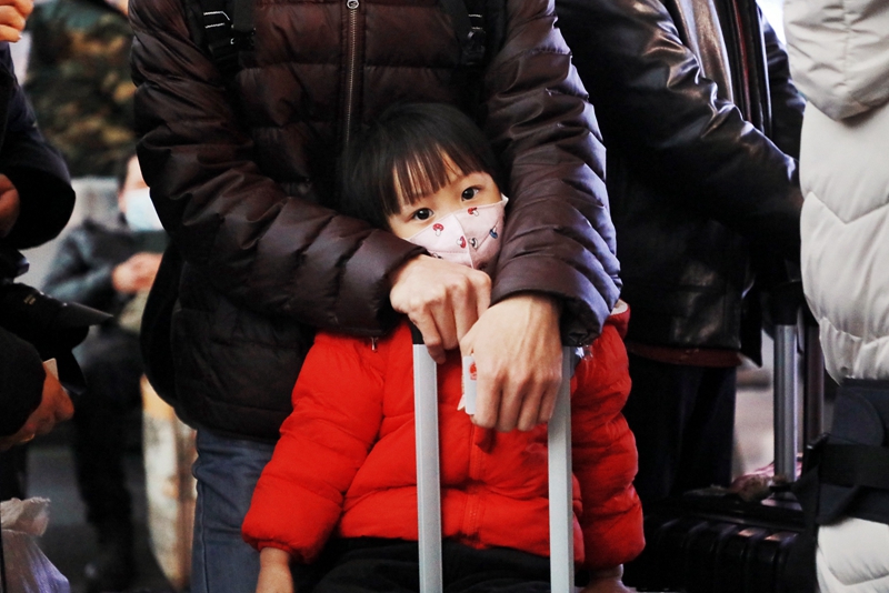 2022年1月25日,南昌火车站候车室里的萌娃在注视前方。张杰 摄