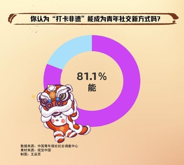 调查中,81.1%的受访青年认为“打卡非遗”能成为年轻人的一种社交新方式。
