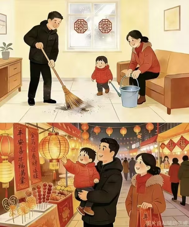 小年,是春节的序幕,是辞旧迎新的开始,更是藏在烟火里的团圆期盼。这一天最重要的仪式,便是祭灶。人们摆上糖瓜、灶饼,恭送灶王爷上天述职,期盼他“上天言好事,回宫降吉祥”。与此同时,扫尘迎新的传统也如期而至,大家细细清扫旧岁尘秽,将洁净与福气迎进家门,寓意辞旧迎新,守护家宅安康顺遂。南北方小年日子虽有先后,年味却同样浓厚。北方的糖瓜甜润,南方的年糕飘香,街巷里的年货市集人头攒动,春联福字早已挂满摊位,处处都是热闹的年景。小年的意义,从来不止于民俗。它在悄悄提醒我们:收拾好心情,备好满心欢喜,静待家人相聚,迎接崭新一年的曙光。(作者/孙婧 编辑/朱浩天)