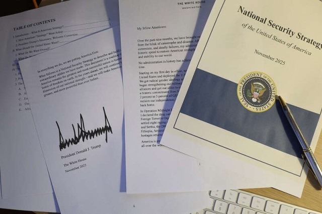 12月8日,美国华盛顿,美国总统唐纳德·特朗普发布《2025年美国国家安全战略》报告。视觉中国供图